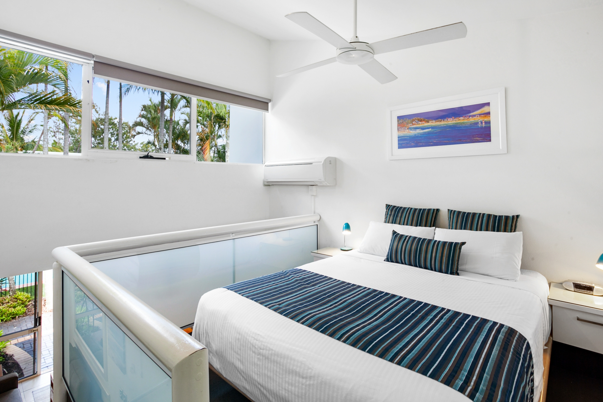 All pool view apartments feature a comfortable lounge area with a flatscreen TV, a dining table, kitchenette, ensuite bathroom and mezzanine-level bedroom with one Queen-sized bed. Amenities include reverse-cycle air conditioning and free WiFi, as well as a private courtyard patio allowing for relaxation, al fresco dining and easy access to the pool.